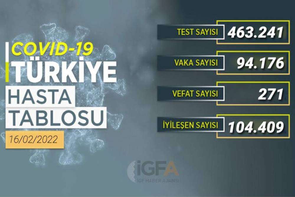 Sağlık Bakanlığı'nın verilerine göre son 24 saate ilişkin 94 bin 176 yeni vaka tespit ederken, 104 bin 409 kişi sağlığına kavuştu.