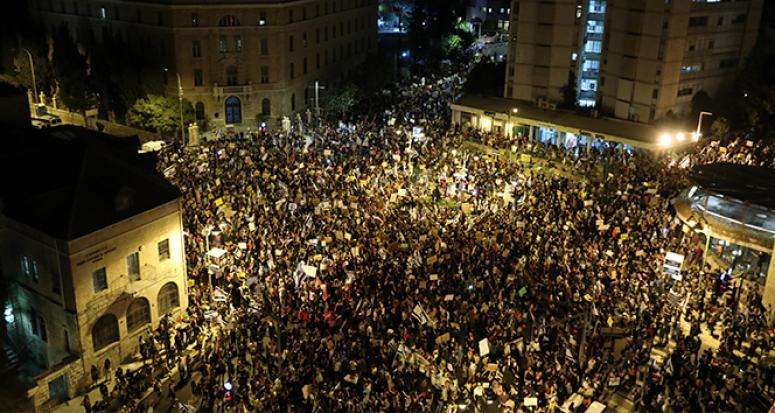 İsrail'de halk korona virüs salgını ile mücadeleyi kötü yönettiği gerekçesi ile ve hakkındaki yolsuzluk davası nedeniyle Başbakan Binyamin Netanyahu'nun istifa etmesi için protestolara devam ediyor. Kudüs'teki başbakanlık konutunun yanı sıra başkent Tel Aviv ve bir çok kentte binlerce İsrailli sokaklara indi. Ülkede 2 aydan bu yana halk Netanyahu'nun istifası için eylemler düzenliyor. Polisin geniş güvenlik önlemleri aldığı gösterilerde ilerleyen saatlerde tansiyonun yükselmesi bekleniyor.