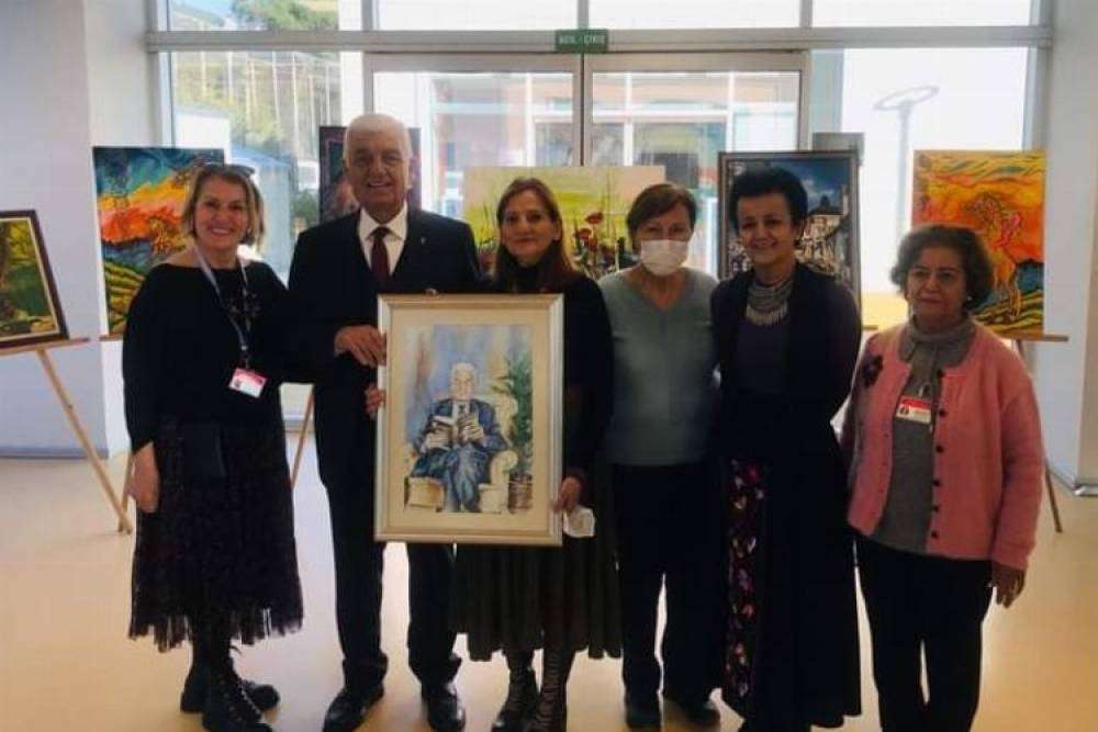 Dernek Başkanı Nimet Topkaç Muğla Büyükşehir Belediye Başkanı Dr. Osman Gürün'e yaptığım suluboya resmi armağan etti.