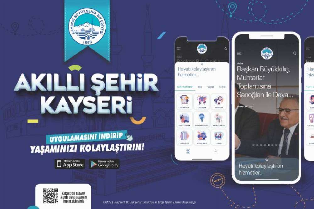 Günümüzde kullanımı her geçen daha da artan akıllı telefonlar için tasarlanmış olan ve Büyükşehir Belediyesi’nin hizmetlerinin sanal mecrada da yapılabilmesine olanak tanıyan Akıllı Şehir Kayseri Uygulaması Büyükşehir Belediyesi hizmetlerine kolayca ulaşım imkânı sağlanıyor. Bu kapsamda arama ve sesli arama fonksiyonları ile en yakın ve nöbetçi eczaneler, adreslerine kadar kullanıcıya bildirilirken, beyaz masa hizmetleri, vefat duyuruları, kültür sanat etkinlikleri, Kent Bilgi Sistemi içerisindeki adres arama, hastane, tarihi eserler, noter, ATM ve otoparklar gibi noktalara ulaşma fırsatı ile şehir kameralarına ulaşım hizmeti sunuluyor. Akıllı Şehir Kayseri Uygulaması ile ayrıca, muhtar bilgileri, projeler, haberler, imar plan değişiklikleri ve harita gibi bilgilere de kolayca ulaşılabiliyor.