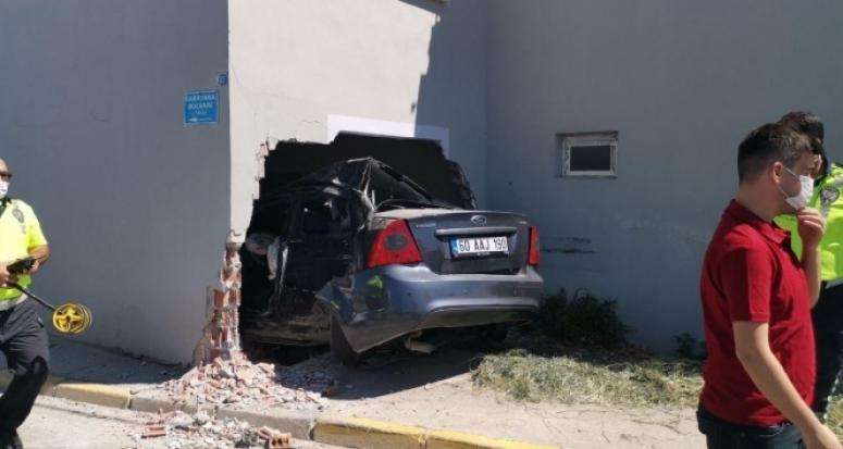 Edinilen bilgiye göre kaza; Erbaa ilçe merkezi Erek Mahallesi Karayaka bulvarında ilerleyen Üzeyir T. (23) idaresindeki 60 AAJ 190 plakalı otomobilin direksiyon hakimiyetini kaybetmesi sonucu meydana geldi. Yol kenarındaki bir evin duvarına hızla çarpan Ford marka otomobil, yatak odasına girdi. Beton duvarı kırarak evin içine giren otomobil sürücüsü araçta sıkıştı. Yoldan geçen vatandaşların yardımı ile yaralı sürücü bulunduğu yerden çıkarılırken, kaza anında yatak odasında bulunan Ahmet Ç. (19) de hafif şekilde yaralandı. Yaralı olay yerine sevk edilen ambulanslarla yaralılar Erbaa Devlet Hastanesine kaldırıldı. Savaş alanına dönenen yatak odasındaki manzara ise kazanın dehşetini gözler önüne serdi. Kaza sonrasında polis ekipleri inceleme başlattı.