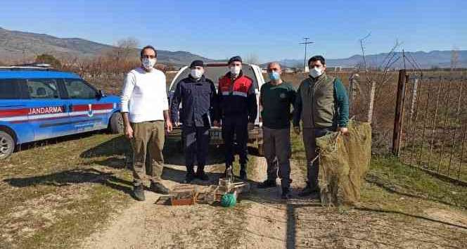 İzmir İl Jandarma Komutanlığı Çevre Koruma Timi ve Menemen İlçe Jandarma Komutanlığı ekipleri, Menemen ilçesi Çavuş Mahallesi'nde bulunan Gediz Nehri kenarında neslinin tükenme tehlikesine karşı koruma altına alınan saka kuşlarının tuzakla avlandığı ihbarını aldı. İhbar üzerine harekete geçen ekipler, bölgede yapılan kontrollerde H.Ç. isimli şahsın tuzakla saka kuşu avladığını tespit etti. Ekipler, yapılan aramalarda avda kullanılan 5 metrekarelik ağ, 20 metre tuzak ipi, 12 metre beyaz ağ ipi, 3 adet el yapımı ahşap kuş kafesi, 40 adet canlı saka cinsi kuş ele geçirdi. Ele geçirilen malzemeler İzmir Doğa Koruma ve Milli Parklar İl Müdürlüğüne teslim edilirken, kuşlar doğaya bırakıldı. H.Ç. isimli şahsa ise Kara Avcılığı Kanunu gereğince 41 bin 45 TL idari para cezası uygulandı.