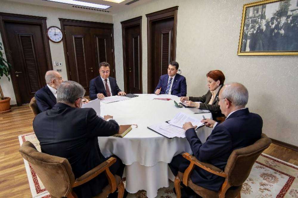 ANKARA (İGFA) - CHP Genel Başkanı Kemal Kılıçdaroğlu, İYİ Parti Genel Başkanı Meral Akşener, DEVA Partisi Genel Başkanı Ali Babacan, Gelecek Partisi Genel Başkanı Ahmet Davutoğlu ve Demokrat Parti Genel Başkanı Gültekin Uysal, bugün saat 14.00’de Saadet Partisi Genel Başkanı Temel Karamollaloğlu’nun ev sahipliğinde, cumhurbaşkanı adayını belirlemek için bir araya geldi.